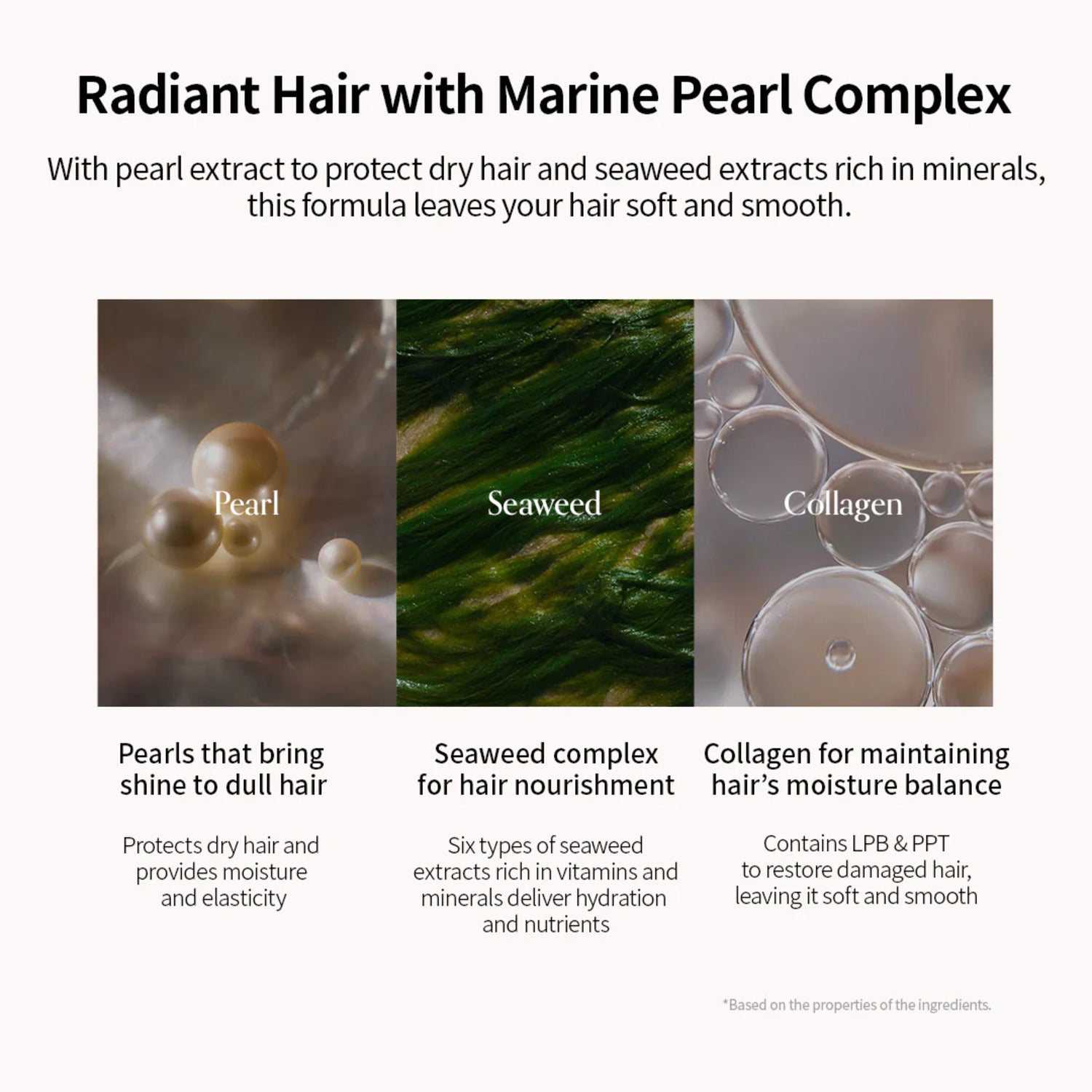 - Pearl Extract — Adds shine and moisture to dull, brittle hair while enhancing softness and elasticity.