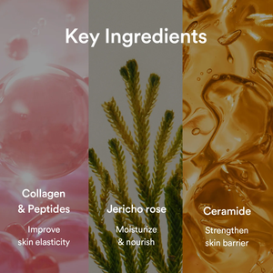 Revitalize your skin with this luxurious vegan hydrogel mask, infused with fermented collagen, Palmitoyl Tripeptide-5, and hydrating Rose of Jericho and Trehalose. It deeply nourishes, boosts elasticity, and restores a youthful, radiant glow.