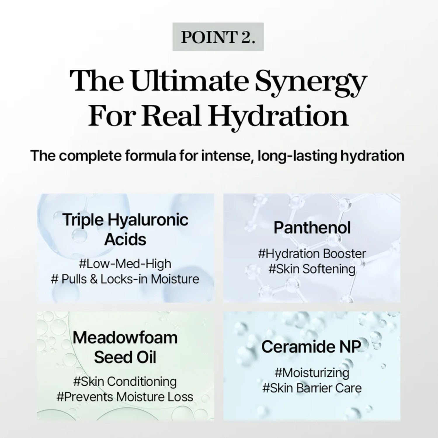 Panthenol & Ceramide NP — Soothe and fortify the skin barrier, helping to lock in hydration and prevent moisture loss.